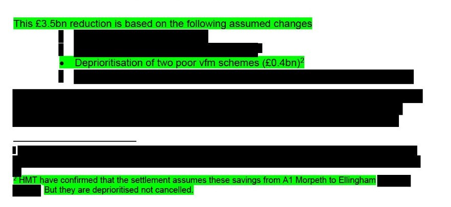 The NAO revealed that one of these schemes was the A1 Morpeth to Ellingham scheme, which the company formally paused almost immediately, but it did not name the other scheme, which was also blacked out of all documents previously disclosed to me.